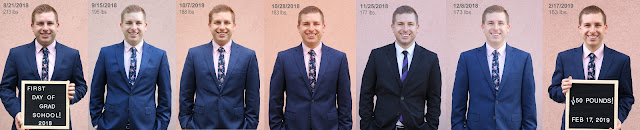 On February 17, 2019, I reached 50 lbs. of total weight lost since August 21, 2018 - that's in less than 6 months! I never thought this was possible, but am 1000% thrilled with the results! I feel great and am more confident about the way I look. It's pretty tough to keep this blue suit (my wedding suit) on these days. I am in desperate need of getting it tailored and downsized so I can actually wear it again - it's literally falling off of me!